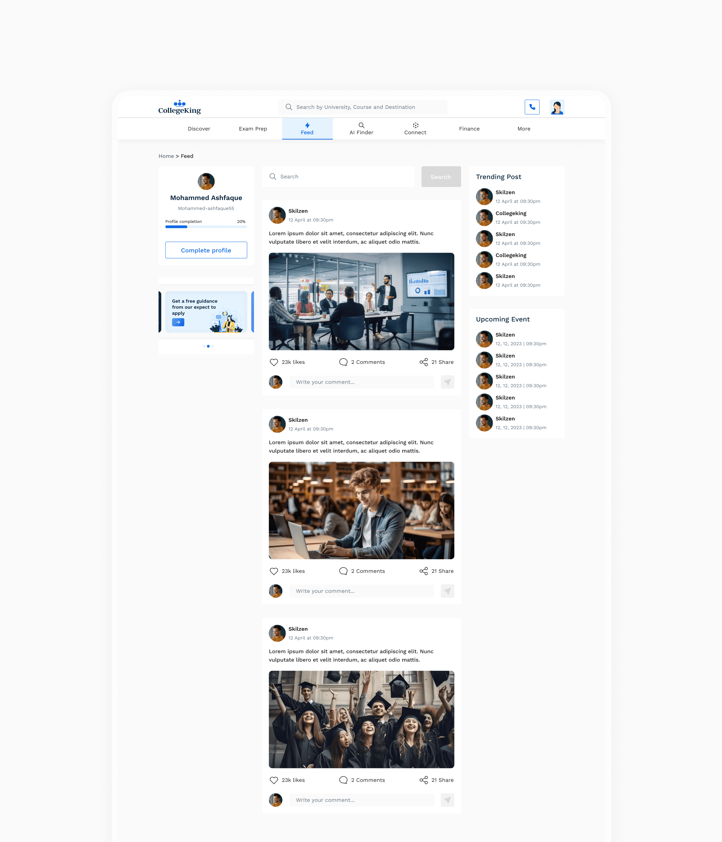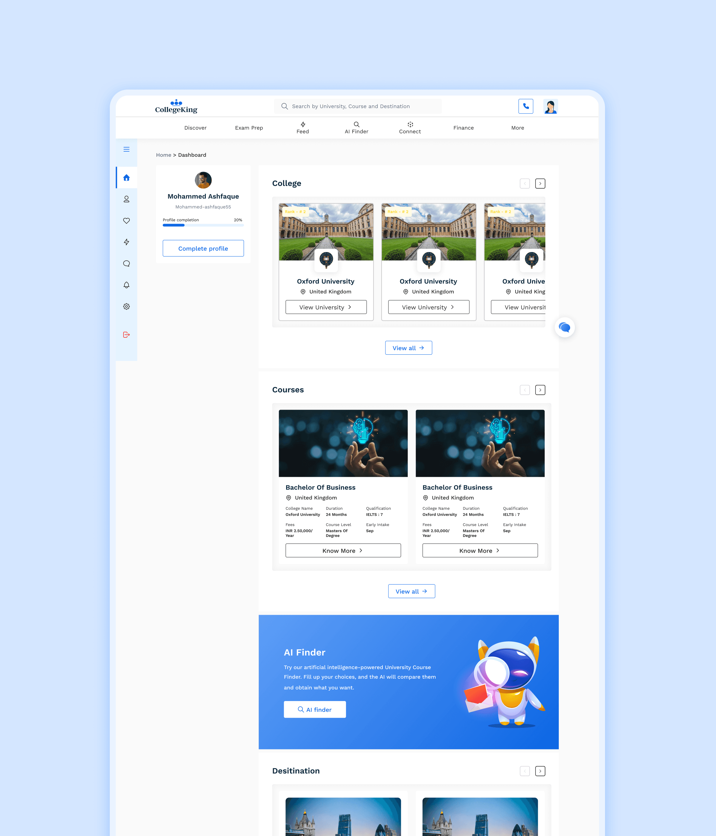 Providing Free counselling and Chat box to guides students through the entire application process, helping them stay organized with checklists, deadlines, and reminders.
