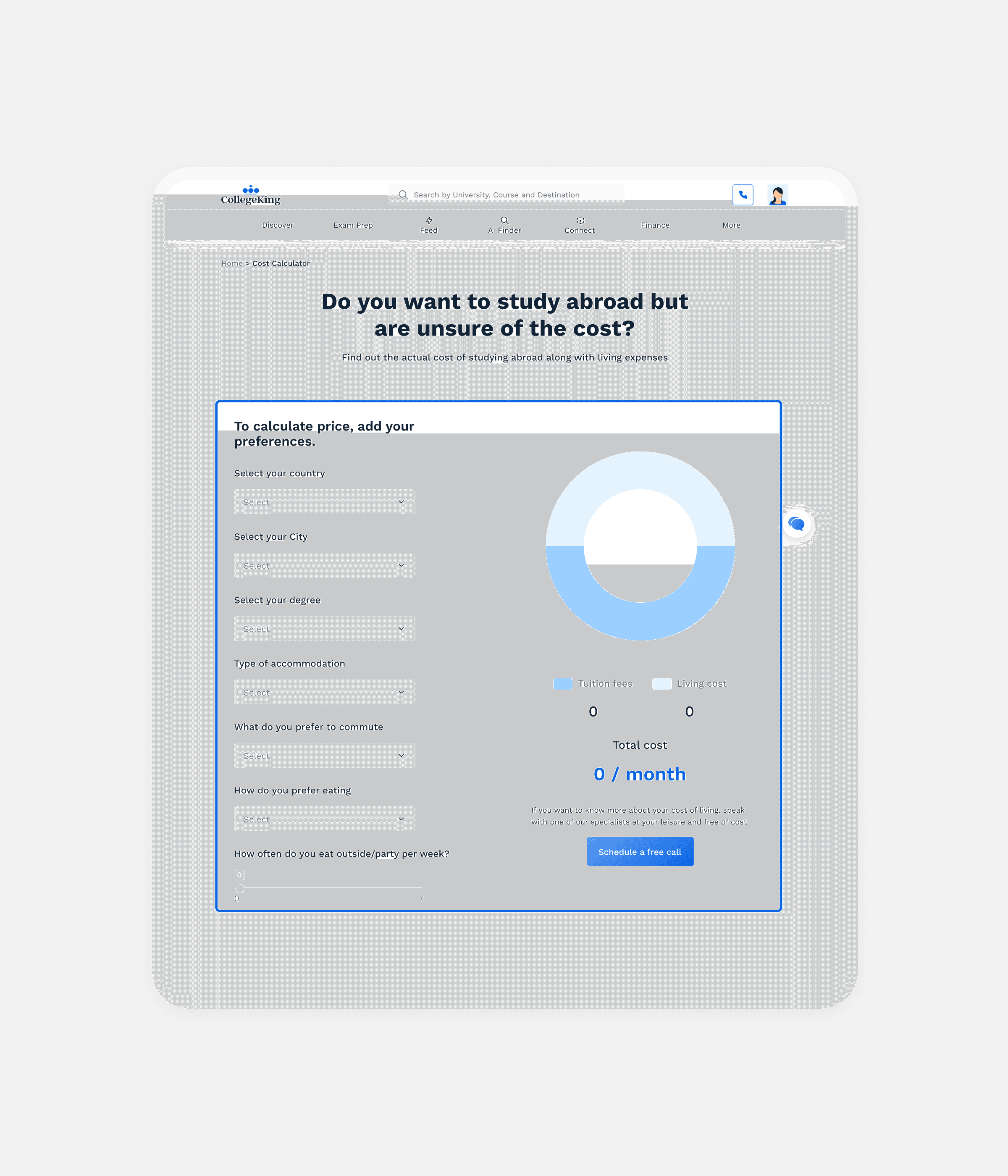 Providing Cost Calculator to Find out the actual cost of studying abroad along with living expenses