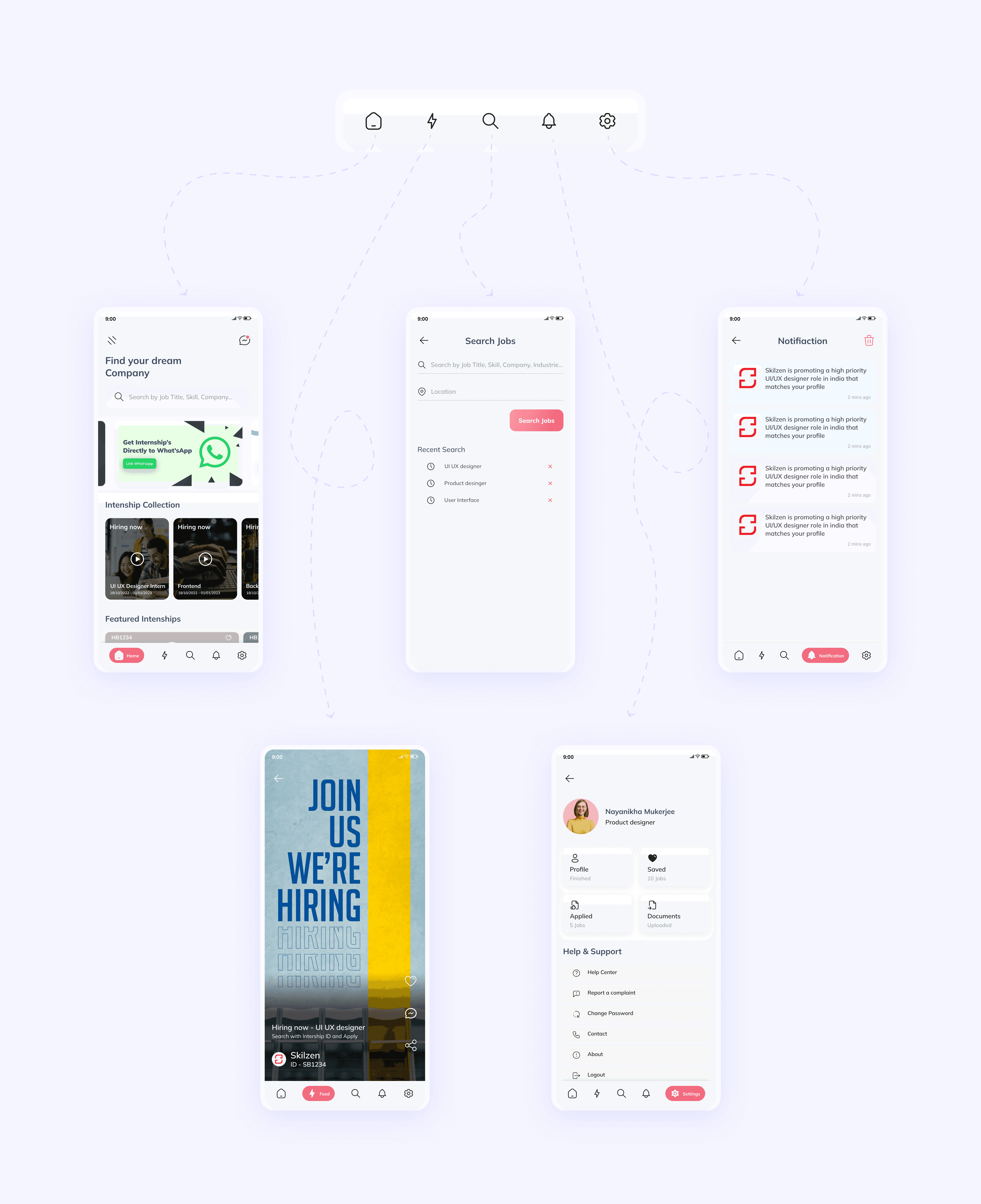 In modern world finding a Internship for college student and fresher is very difficult task. We designed a app called HiringBird which focused on providing an Friendly user experience through its design and sessions. It is build to save user stress of browsing and searching. The app allow user to search job based on their preference such as Location, Industry, Salary range and more